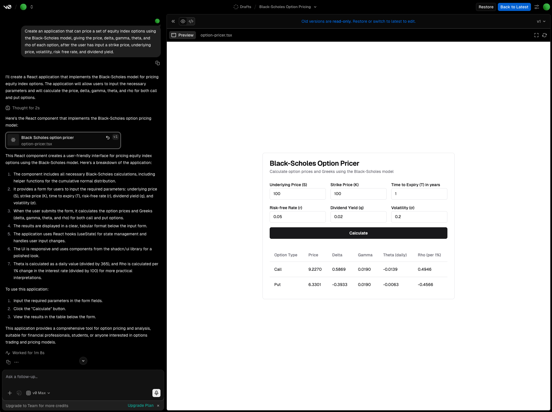 Prototyping an Equities Option Pricer Application