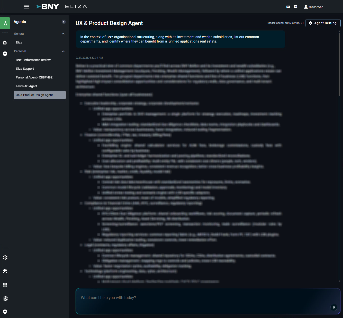 As part of BNY's mandatory AI enablement programme — totalling approximately 80 hours of formal AI training per employee — I designed and built a personal AI agent to support discovery and design activities within the UX and product design process, applying AI directly to real-world design workflows rather than theoretical use cases.
