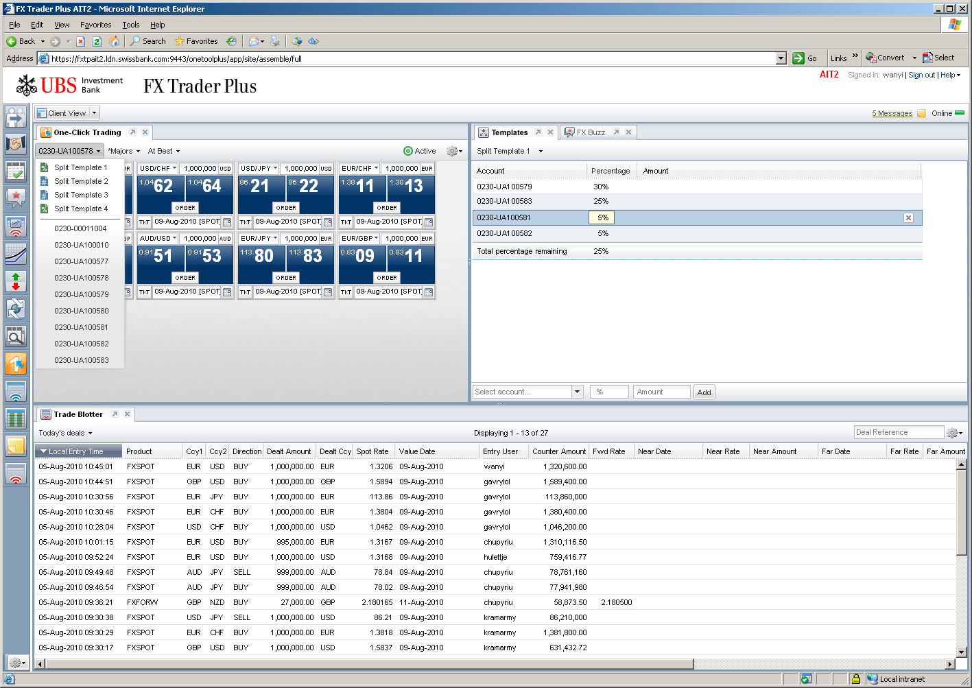 - The visual design language is obviously dated, but was the standard look 'n' feel for UBS' Foreign Exchange apps at the time, and also reflects the level of visual design sophistication for web applications in the early 2010s.